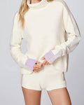 This sweater features a trendy color block design and a cozy turtleneck, crafted from soft and warm knit fabric. The relaxed fit and long sleeves offer both comfort and style, making it perfect for layering in fall and winter. The combination of cream, gray, and lavender adds a feminine and chic touch, suitable for both casual and semi-formal occasions. Pair it with jeans, skirts, or shorts for a versatile look that elevates your wardrobe.